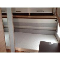 Het dwars geplaatste bed biedt voldoende ruimte voor 2 personen. Om het u aan niets te laten ontbreken, zijn de bedden voorzien van zowel lattenbodems als traagschuimmatrassen. In de comfortabele badkamer van deze caravan vindt u behalve een wastafel ook een ingebouwd cassettetoilet.