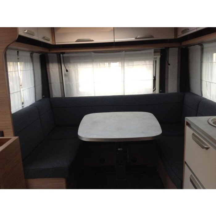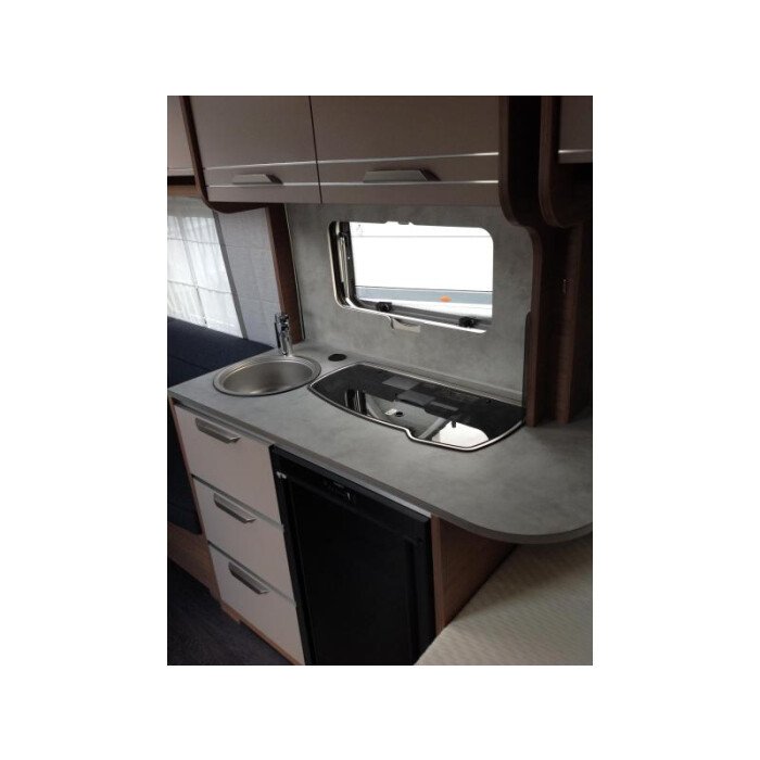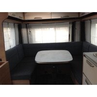 De gezellige en handige rondzit waar de caravan over beschikt, kan ook dienen als slaapgelegenheid. Centraal in de caravan bevindt zich de complete middenkeuken. Er is een warmwatervoorziening in de vorm van een boiler aanwezig. De koelkast met vriesvak biedt voldoende ruimte voor heel uw voorraad.