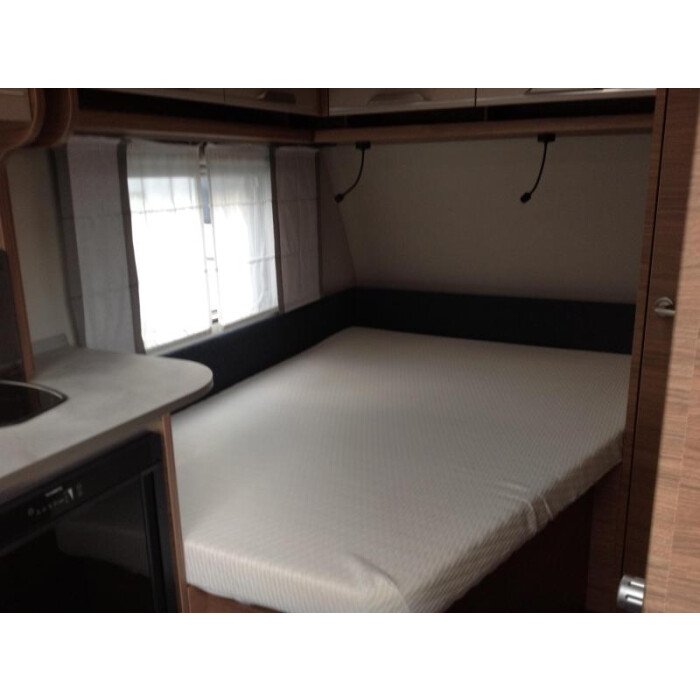 De caravan is uitgerust met een Frans bed, een in de lengte geplaatst tweepersoons bed. U kunt in deze caravan genieten van een weldadige nachtrust dankzij de lattenbodems en traagschuimmatrassen op de bedden. In de badkamer vindt u een wastafel om u op te frissen, alsmede een ingebouwd cassettetoilet.