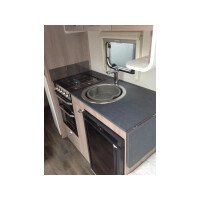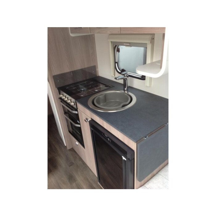 De handige standaardzit biedt niet alleen de nodige ruimte om te zitten, maar kan ook als slaapgelegenheid worden gebruikt. De luxe en compleet uitgevoerde keuken van deze Sprite caravan heeft onder meer een oven, zodat u broodjes af kunt bakken en ovengerechten kunt maken. Er is een warmwatervoorziening in de vorm van een boiler aanwezig. De koelkast met vriescompartiment is ruim genoeg voor al uw etenswaren.