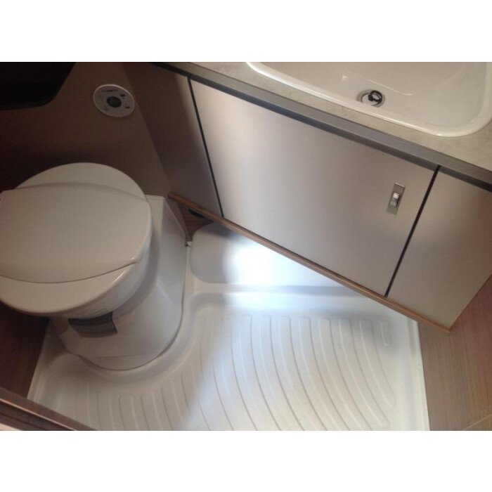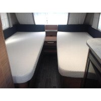 Slapen doet u op de 2 aparte bedden, die borg staan voor extra ruimte en een makkelijke instap. U kunt in deze caravan genieten van een weldadige nachtrust dankzij de lattenbodems en traagschuimmatrassen op de bedden. In de badkamer vindt u een wastafel om u op te frissen, alsmede een ingebouwd cassettetoilet.
