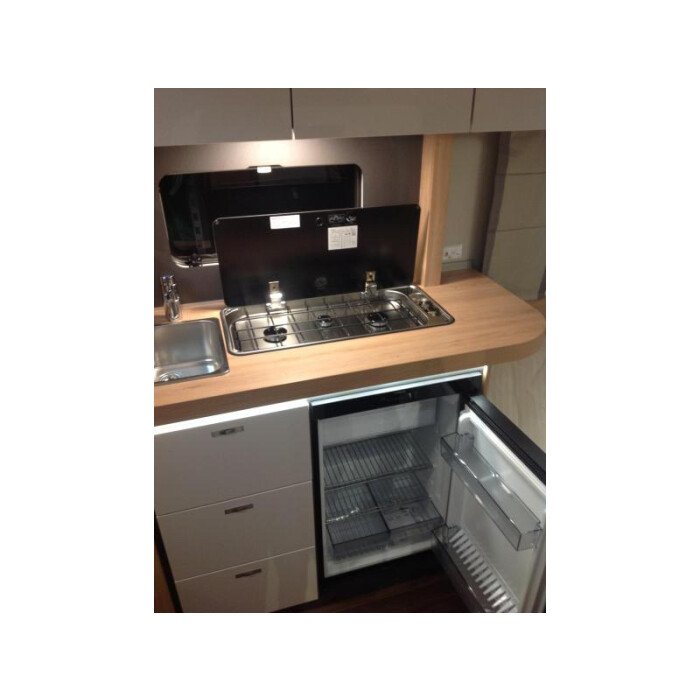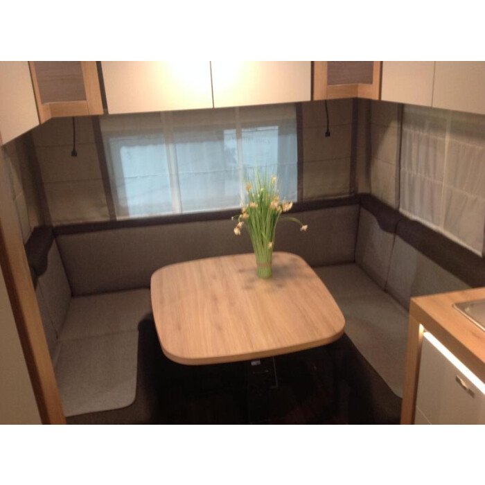 De gezellige en handige rondzit waar de caravan over beschikt, kan ook dienen als slaapgelegenheid. De middenkeuken is zeer compleet uitgevoerd. Er is een boiler aanwezig, die u van warm water voorziet. Om uw etenswaren op te bergen is er een koelkast met vriescompartiment ingebouwd.