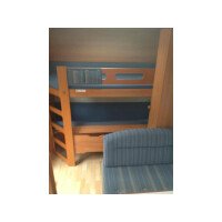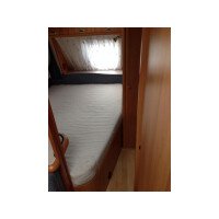 De caravan is uitgerust met een Frans bed, een in de lengte geplaatst tweepersoons bed. Door het dwars geplaatste en ruimtebesparende stapelbed is deze gezinscaravan ideaal om met kinderen te gaan kamperen. U kunt in deze caravan genieten van een weldadige nachtrust dankzij de lattenbodems en pocketveringsmatrassen op de bedden. Behalve een cassettetoilet heeft de badkamer ook een wastafel, waar u zich lekker op kunt frissen.