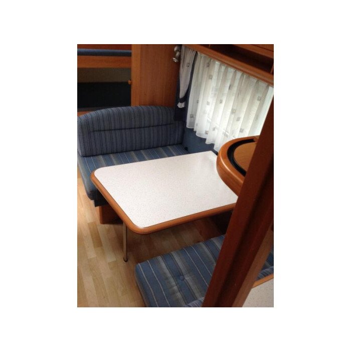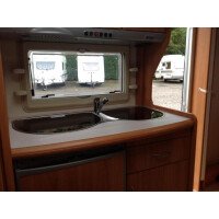 De caravan beschikt over een treinzit. Handig als extra slaapplaats en om samen te eten en te drinken. De middenkeuken is zeer compleet uitgevoerd. Er is een warmwatervoorziening in de vorm van een boiler aanwezig. Om uw etenswaren op te bergen is er een koelkast met vriescompartiment ingebouwd.