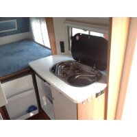 De handige standaardzit biedt niet alleen de nodige ruimte om te zitten, maar kan ook als slaapgelegenheid worden gebruikt. De middenkeuken is zeer compleet uitgevoerd. Een ingebouwde boiler voorziet u van warm water. De koelkast met vriescompartiment is ruim genoeg voor al uw etenswaren.