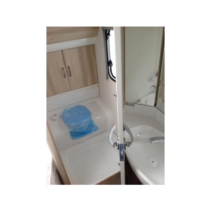 De caravan is uitgerust met een Frans bed, een in de lengte geplaatst tweepersoons bed. Om u van een welverdiende nachtrust te laten genieten, hebben de bedden niet alleen lattenbodems maar ook pocketveringsmatrassen. In de badkamer vindt u een wastafel om u op te frissen, alsmede een ingebouwd cassettetoilet.