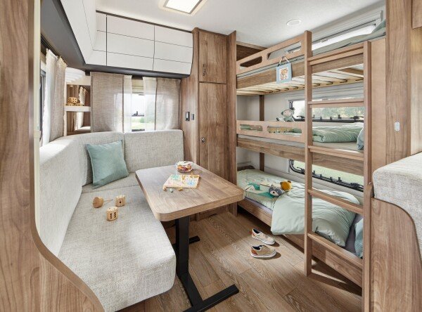 8 indelingen, waarvan 3 met kinderbedden, bieden ruimte voor uiteenlopende wensen. In sommige modellen zijn er zelfs zitgroepen voor kleine kinderen. Zo kunnen ze hun kleur- en knutselspullen ook eens laten liggen.
