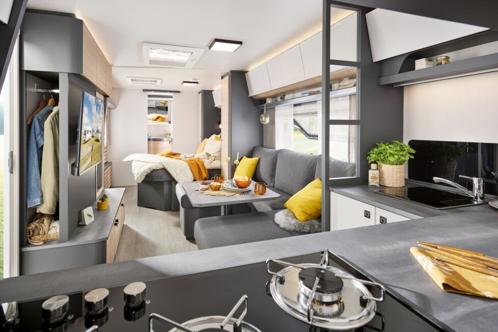 Groot, groter, gigantisch: met tot wel 20 m² is de MAXIA net een vakantieappartement op wielen. Eenpersoonsbedden of vrijstaand queensbed: in deze luxe caravan blijft geen wens onvervuld. Royale wasruimten en qua kleur op elkaar afgestemde woon- en slaapgedeelten maken de premiumcaravan perfect.