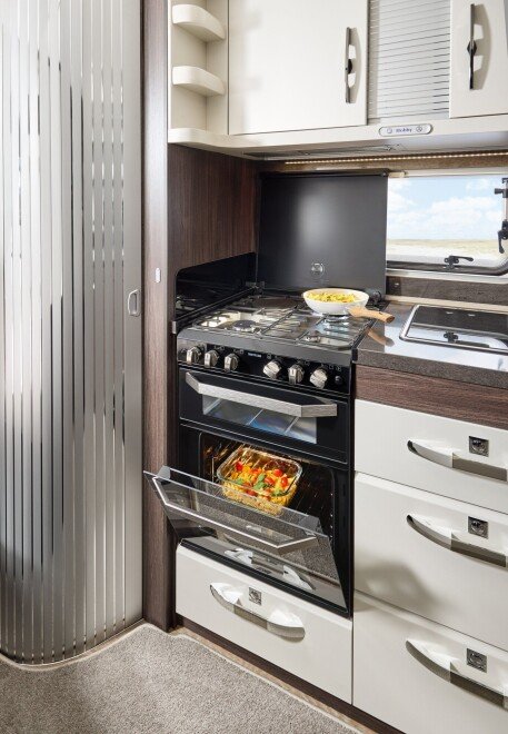 De in totaal 9 modellen bieden veel flexibiliteit. 6 indelingen van meer dan 8 meter lang hebben een extra portie ruimte gekregen. Eenpersoonsbedden, tweepersoonsbed of stapelbedden: aan u de keus. De PRESTIGE 650 KFU heeft zelfs een aparte kinderkamer met een eigen kinderzitgroep. De grote keuken met veel opbergruimte en de apothekerskasten zorgen er ook bij het koken voor, dat u veel bewegingsvrijheid heeft.