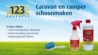 Clean 123 is een sterk reinigende shampoo zonder toevoeging van geur- of kleurstoffen. Clean 123 wordt toegepast bij het reinigen van ex- en interieur van caravan of camper, uitsluitend middels de gebruiksklare halve liter. Met Clean 123 verwijdert u snel het eerste vuil zoals remmenstof, zwarte strepen, vliegen etc.