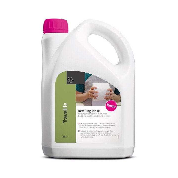 Zoekt u een effectief schoonmaakmiddel voor de spoelwatertank van uw draagbaar toilet of cassettetoilet? De Travellife KemPing toiletvloeistof Rinse is een krachtig middel voor de spoelwatertank. Hij is eenvoudig te gebruiken op de camping, bijvoorbeeld in uw camper, caravan of tent. Dit product zorgt voor een effectievere spoeling, houdt het spoelwater schoon en ruikt langdurig fris.