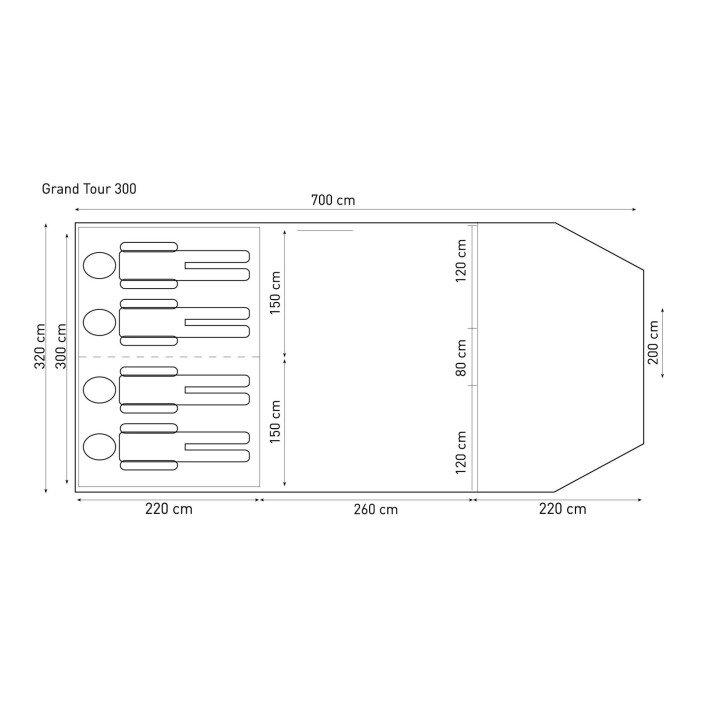 De Grand Tour 300 van Active Leisure is een familietent vervaardigd in een ademend polyester/katoen. Deze tunneltent heeft een stevig bisonyl grondzeil wat het water en vuil buiten houdt. Alle afsluitbare venster zijn tevens voorzien van een mesh gedeelte voor een optimale ventilatie. Ook de zijdeur heeft een fijne mesh deur. De ruime binnentent is voorzien van een scheidingswandje. De Grand Tour heeft een vast voorportaal met mesh deur wat als opbergruimte voor bijv. meubelen te gebruiken is maar tevens als luifel. De zijpanelen zijn wegrolbaar waardoor een prima luifel ontstaat.