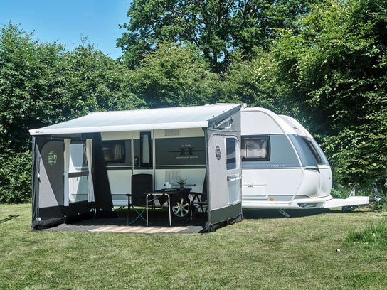 De Buddy is een duurzame & stijlvolle luifeltent, ontworpen om aan de caravanluifel te worden bevestigd om zowel beschutting als schaduw buiten de caravan te bieden. Twee zijkanten en een front creëren een afgesloten leefruimte onder de luifel.