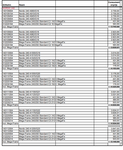 De Isabella Nordic wordt standaard geleverd met een standaard wielkastafdichting caravan-tochtstrook, tenttas, verandastang, FixOn, Zinox Megaframe, foedraal voor tentstokken en haringen incl. haringtrekker. Optioneel is een ronde wielflap of aangepaste tochtstrook leverbaar.