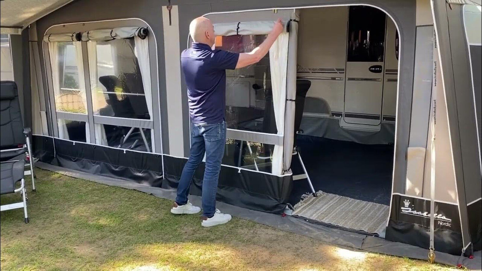De Isabella Nordic voortent heeft een doekcombinatie zoals u deze nog niet eerder heeft gezien van Isabella. De voortent mag een ware 4-seizoens-tent genoemd worden en wordt grotendeels gemaakt van een stevig PVC. Het gebruikte PVC is dubbelzijdig gecoat en wordt gebruikt voor het dak van de Nordic voortent. Dit PVC is enorm sterk, rekt niet en is daardoor (mits goed ondersteund) belast tegen het gewicht van sneeuwval.