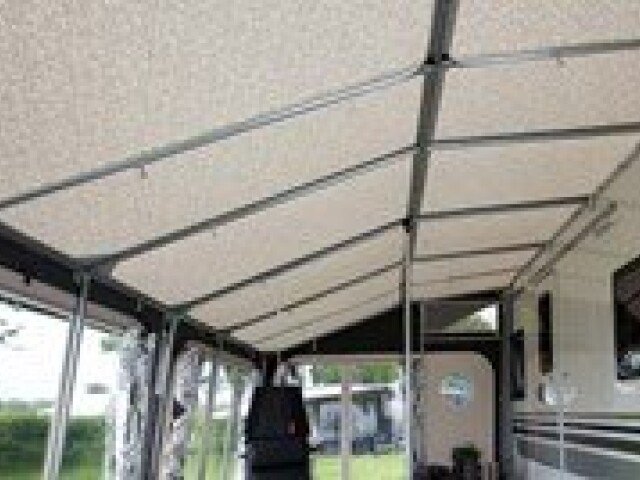 De twee meegeleverde steunstangen duwen de vastgenaaide sluitkussens stevig vast tegen de caravan voor een optimale afdichting.