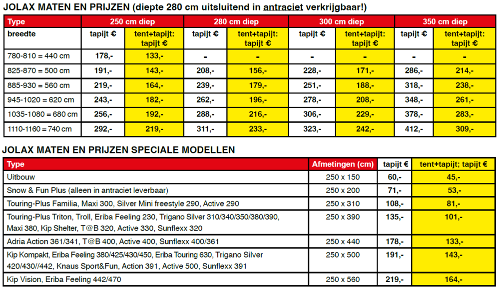 Het oerdegelijke Jolax voortentkleed is comfortabel, zacht en heerlijk warm aan uw voeten. Daarnaast zorgt het er natuurlijk voor dat de spullen in uw voortent schoon en droog blijven.
